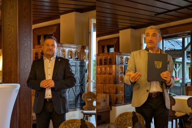 In ihren Grußworten gingen Karl-Heinz Eppinger (links) und Dr. Ronny Raith (rechts) auf die lange Tradition von Zwiesel in der Glasherstellung ein und hoben die reiche Forstwirtschaft im Landkreis Regen hervor, die sich durch besonders robuste und langlebige Hölzer auszeichnet.